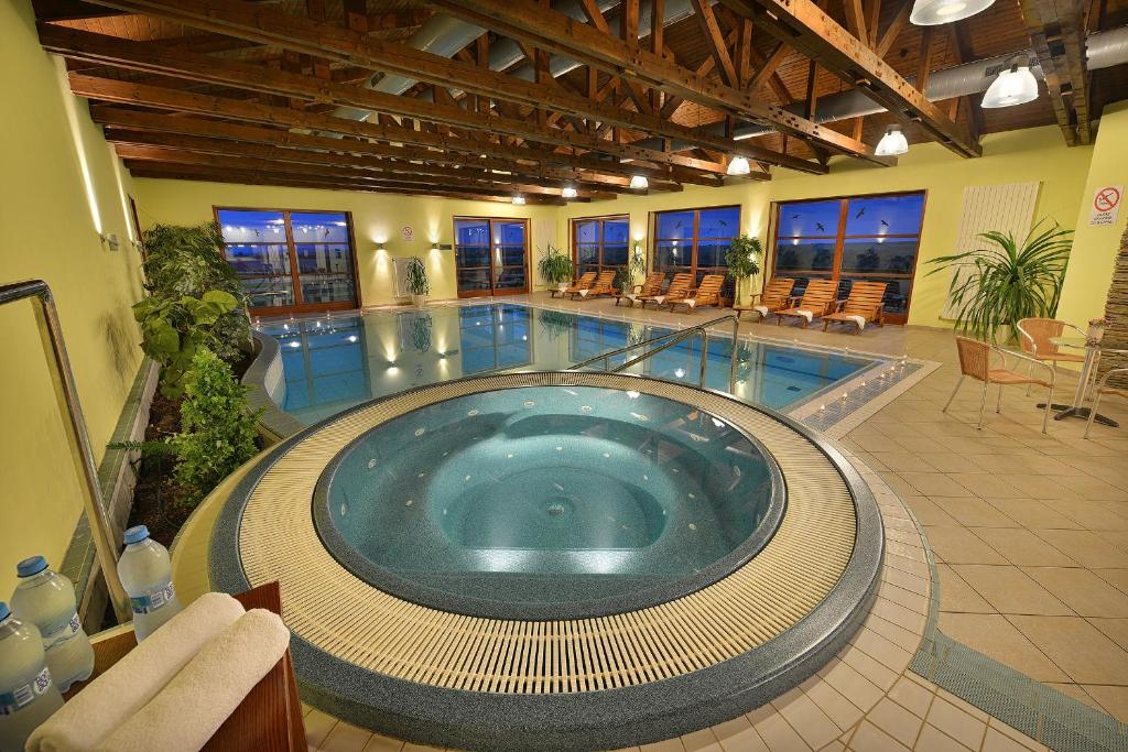 Das Hotel Happy Star bietet ein Wellnesscenter mit Innenpool, Whirlpool, Dampfkabine und Fitnesscenter, das den Gästen von 9:00 bis 21:00 Uhr zur Verfügung steht. Gegen Gebühr können Sie Sauna, Infrarotsauna, Solarium, Hydromassagebad, Kräuterdampfbad sowie Massagen und Kosmetikanwendungen nutzen. Ebenfalls verfügbar: Tennisplatz, Bowling, Russisches Kegelspiel, Fahrradverleih (inkl. Abstellraum), Billard, Tischfußball, Darts und Schlümpfe sowie im Sommer auch Tischtennis. Auf Anfrage können E-Bikes oder ein Ausritt in den Nationalpark Podyjí organisiert werden. Für Kinder gibt es eine Kinderecke im Innenbereich sowie ein Trampolin, Schaukeln, eine Seilbahn und einen Sandkasten im Außenbereich.
