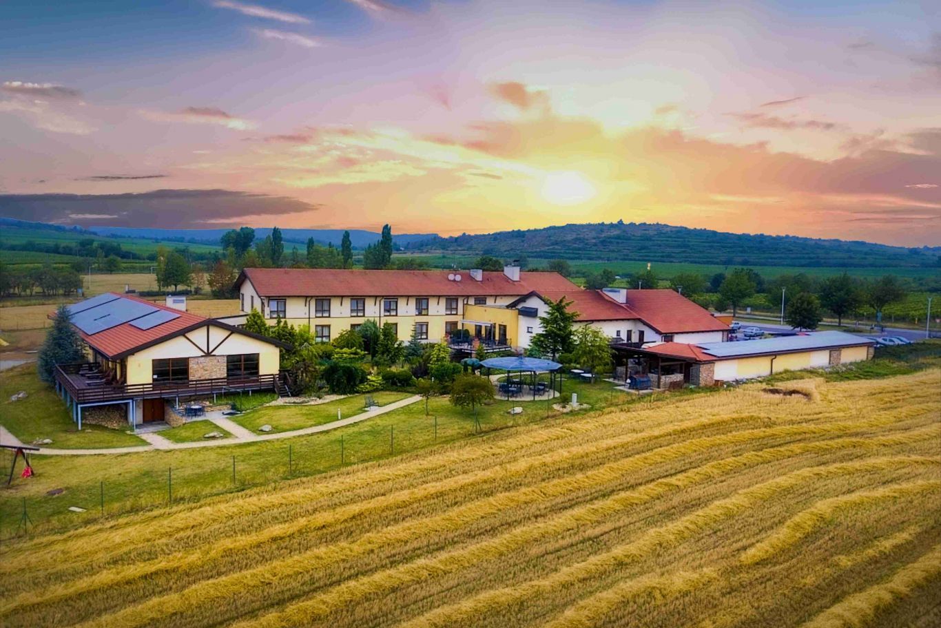 Frühstücksbuffet, Abendessen als Menü. Sie können auch das Restaurant nutzen, das lokale mährische Spezialitäten serviert, oder eine Verkostung in der Weinbar oder im Keller: Paarung von Weinen und aromatischen Essenzen oder Weinen und Pralinen.