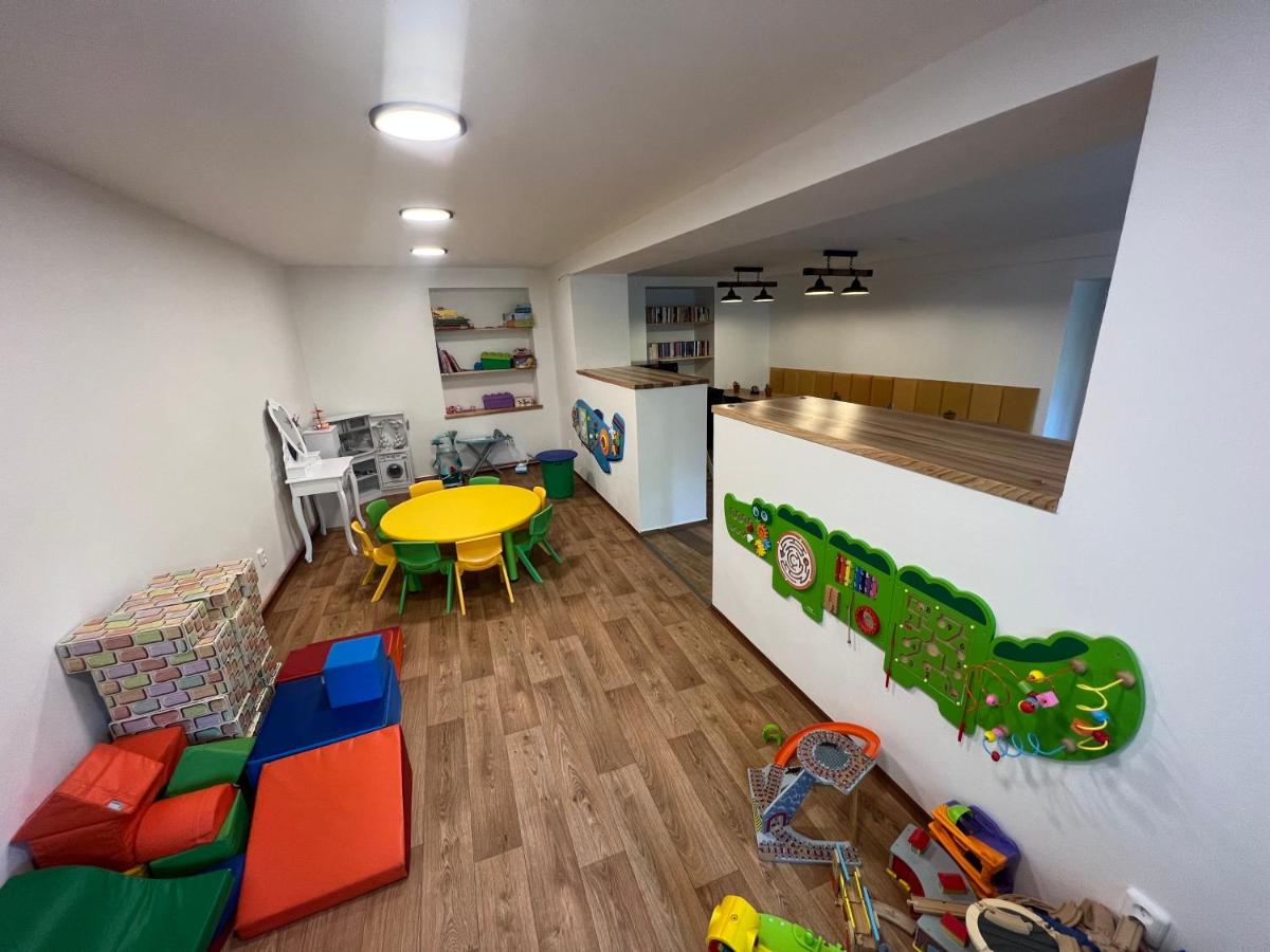 The guesthouse has a dining room with a bar and a spacious clubhouse with a children's corner. The clubhouse has a small kitchenette - refrigerator, kettle and microwave. In front of the guesthouse there is a terrace, children's playground and table tennis. Parking - 5 parking spaces in front of the guesthouse, other guests park in public parking lots for free (200 m from the guesthouse). Dogs are not allowed in the guesthouse.