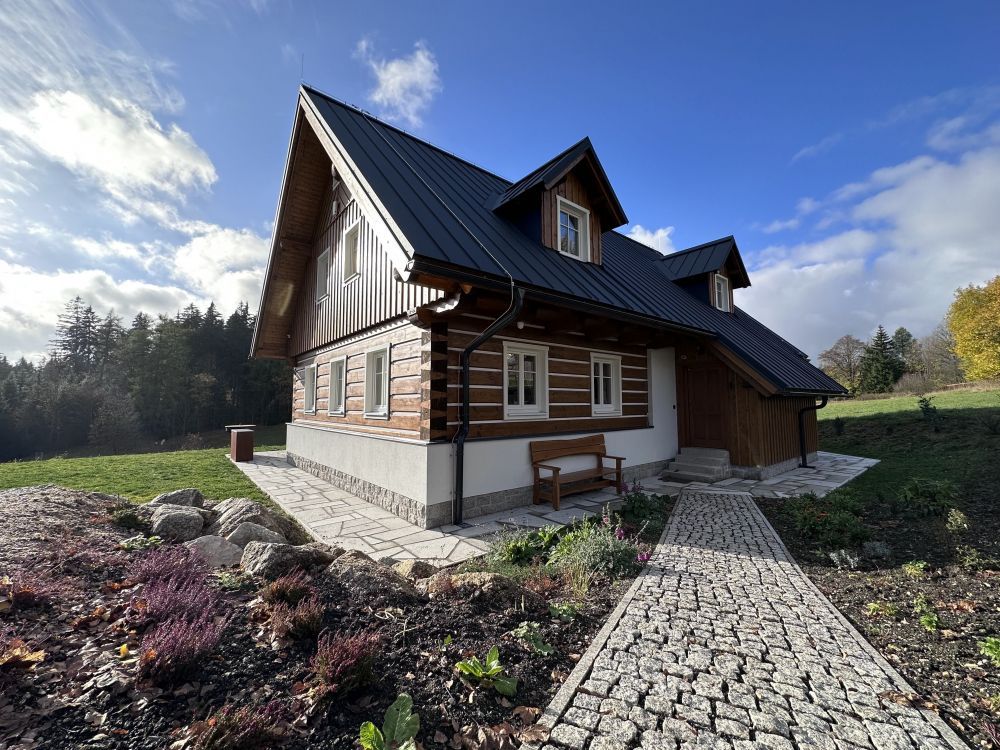 Roubenka Jindřiška is located in the Jizera Mountains, in the picturesque village of Jindřichov nad Nisou. It is built in a quiet place, on a meadow with a view of the forest. In the summer, it offers many options for trips to the surrounding area. In winter, you can use the cross-country tracks that are connected to the Jizerská magistrál and are part of the Břízka ski area.