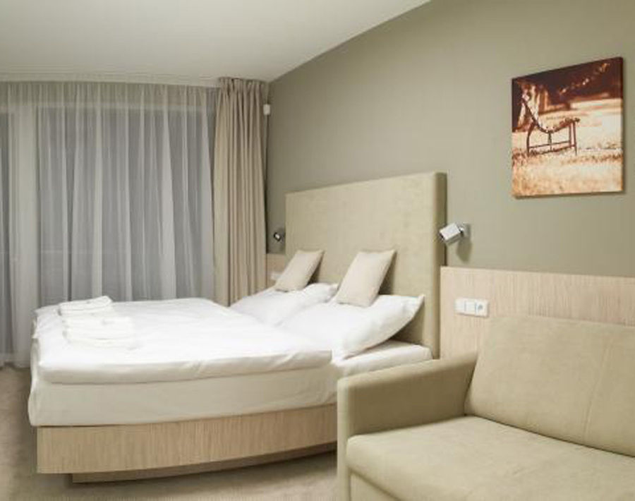 Wellness Hotel Pohoda has the modern comfort of new and renovated rooms in four-star standard, which are equipped with private bathroom, LCD satellite TV, minibar, telephone and wired and wireless internet connection. Rooms at the hotel are fully air conditioned and have a balcony or floor-to-ceiling window with views of the surrounding countryside.