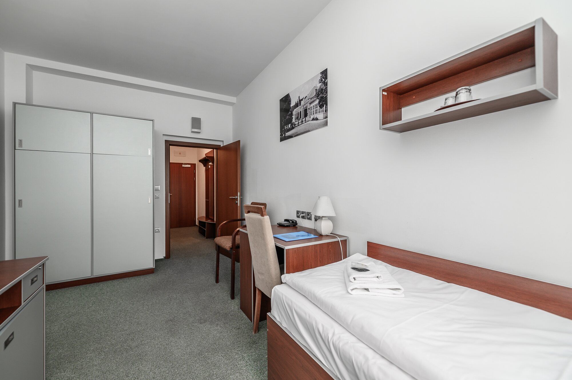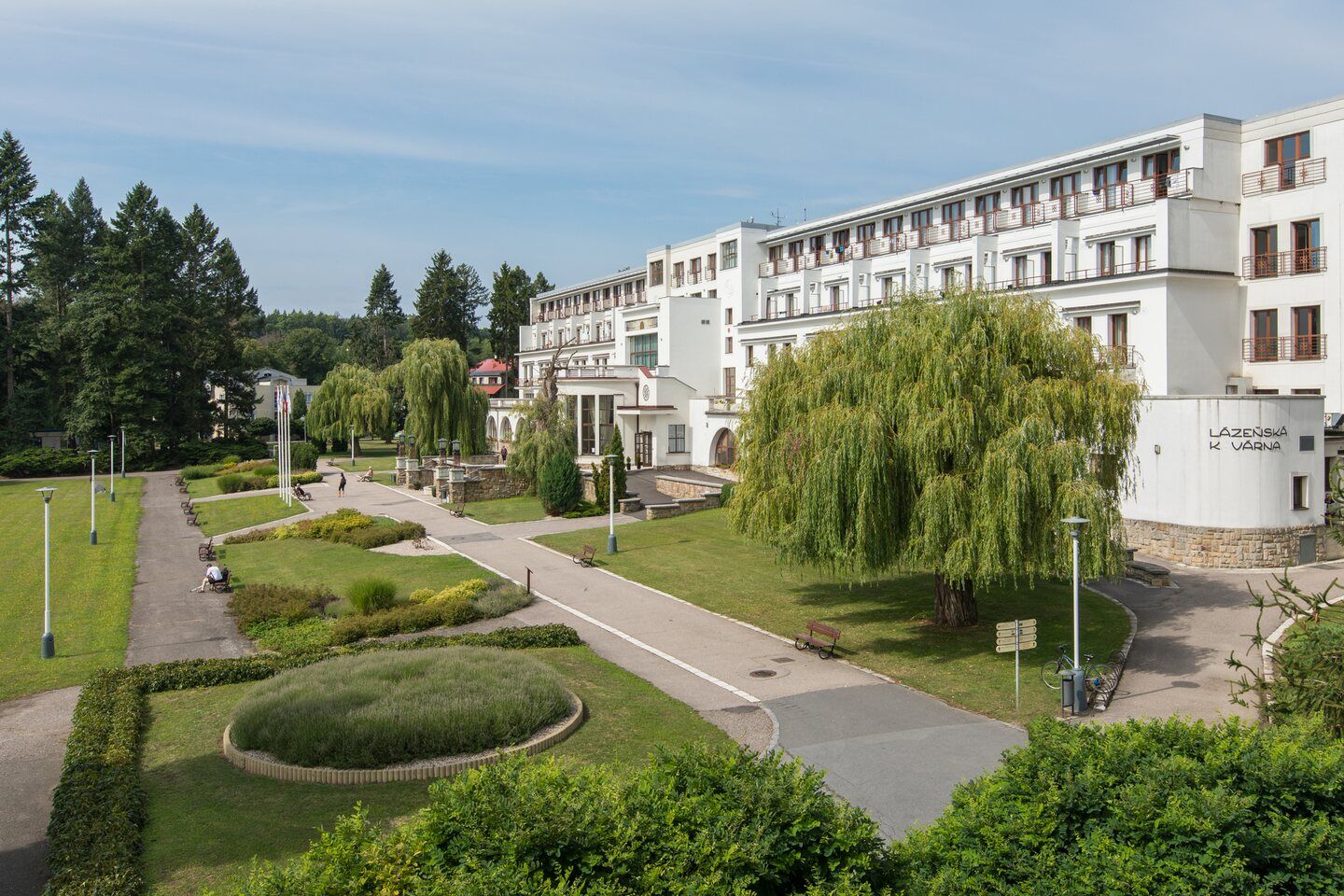 Accommodation is provided in single and double rooms in the main treatment building - Masaryk's house and in adjacent First Republic villas. The rooms are equipped with their own bathroom, TV, refrigerator, telephone and WIFI connection.