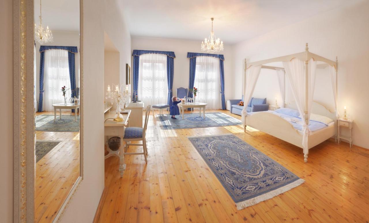 Pokoje dwuosobowe z WC, TVSAT i telefonem. Pokój Fraucimor - mały, Vilém - duży, Rožmberk - duży z balkonem, Apartament Jakobínka - sypialnia i kuchnia w salonie, Apartament Bílá pani Perchty - de luxe, Apartament Petr Vok - de luxe.