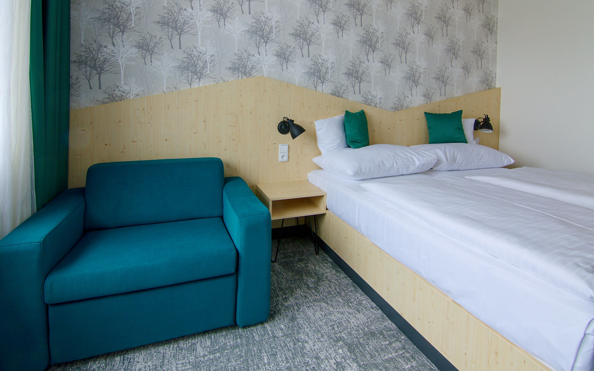 Całkowicie odnowiona część noclegowa oferuje pokoje dwuosobowe z dostawką, prysznicem/WC, telewizją satelitarną, telefonem, a niektóre także z balkonem (ceny różnią się).