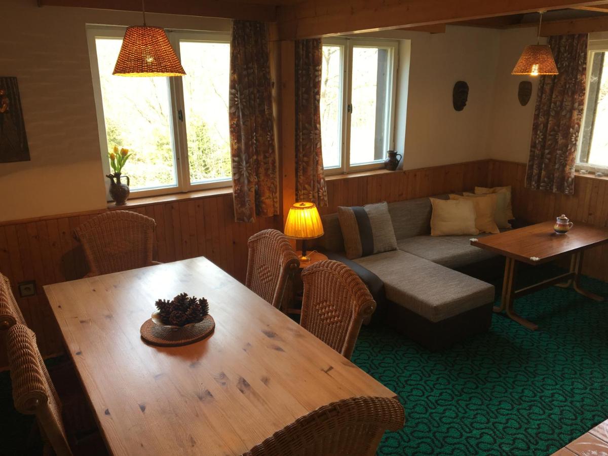 Chata u Koupaliště disponuje kuchyní, obývacím pokojem s TV, rádiem a kachlovými krbovými kamny, sedací soupravou a jídelním koutem. V suterénu se nachází úschovna sportovních potřeb.