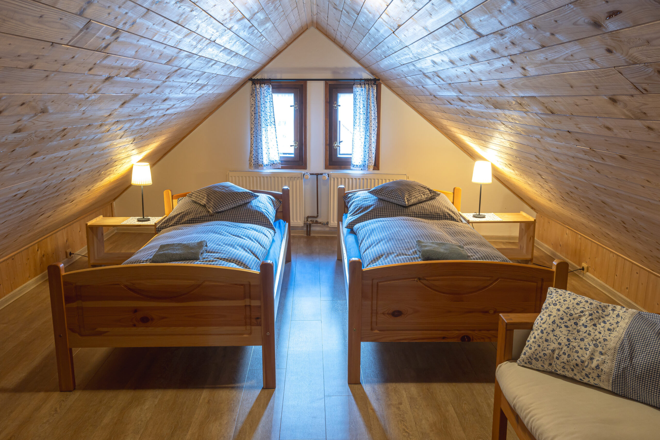 Chalupa Maršovka nabízí ubytování až pro 15 osob. Pokoje jsou situovány v druhém patře domu, kde je k dispozici i koupelna s WC. V přízemí je pak druhá samostatná koupelna s vanou a pračkou, samostatné WC, společenská místnost a kuchyň s jídelnou.